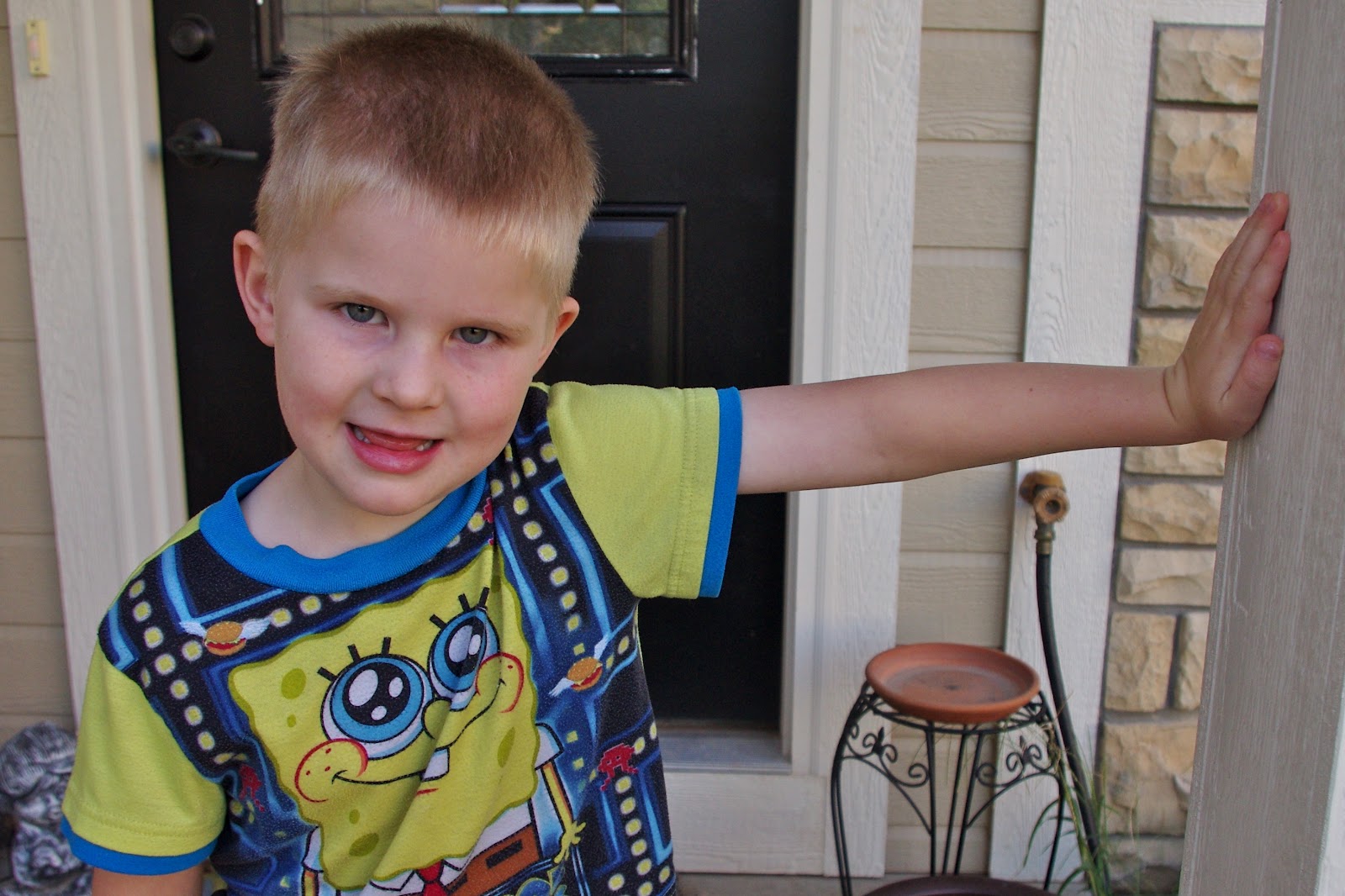 Wednesday was Aiden's first day of Preschool. It is the same school/class that he had last year as well. Most of his past classmates moved on to Kindergarten so there is only one or two other kids that he knows. But he loves school too and was very excited that it was his turn to go to school. We have talked about it all summer and sometimes he would ask to drive by his school.