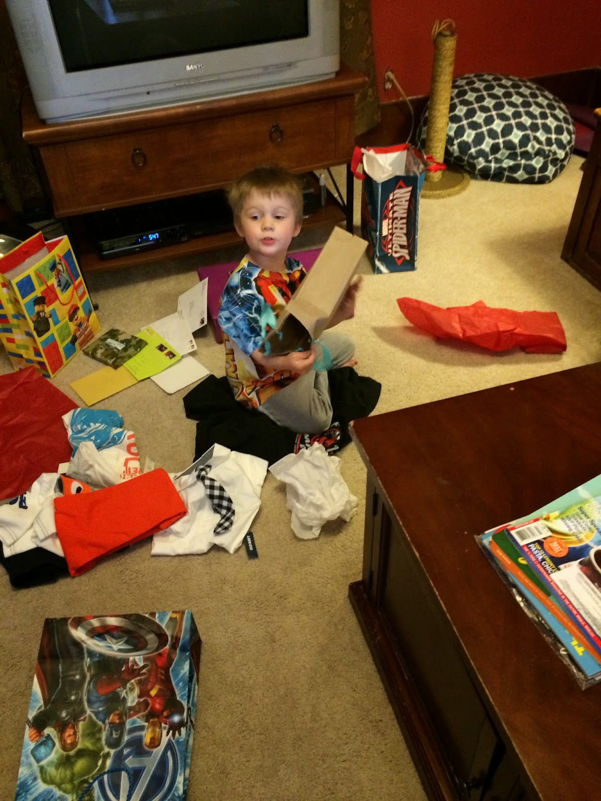 He wasn't too excited for his cake, who could blame him. The poor kid really wanted to ride his new bike. But the rest of us really wanted cake and ice cream!